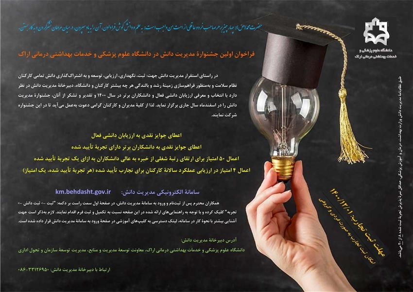 فراخوان جشنوارۀ مدیریت دانش در دانشگاه علوم پزشکی و خدمات بهداشتی درمانی اراک